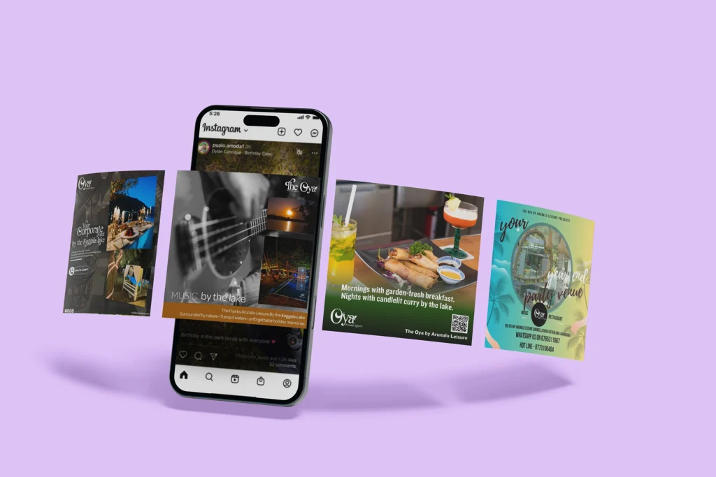 The Oya by Arunalu Leisure– A boutique riverside resort in Sri Lanka offering unique leisure experiences. We manage their social media presence with videos, posts, reels, and boosted campaigns, driving engagement and generating direct business through digital platforms.
