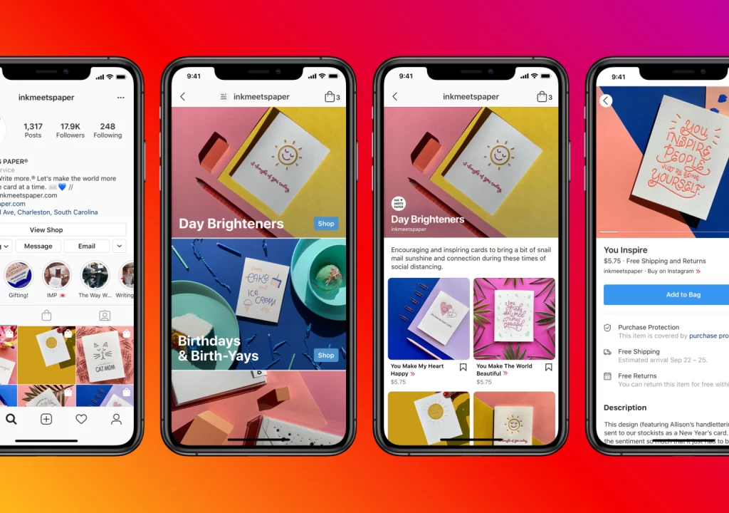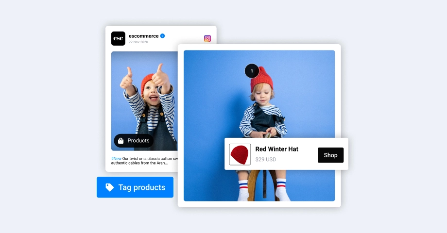 For example, on Instagram, you can tag products in your posts and stories. Users can tap the product tags to see more details and purchase, all without leaving the app.